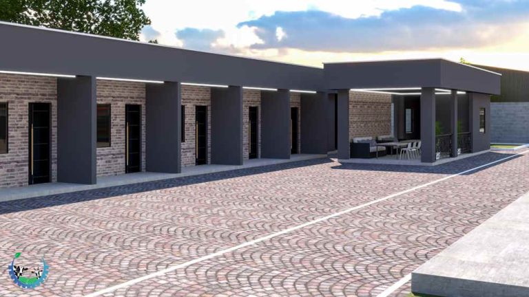 The block spans an area of 122.96 square meter containing; • 5 double occupant units each with a small kitchen and porch • A stand-alone toilet (25.5 square meters) block with…